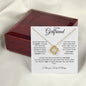 Imagine her reaction receiving this beautiful 'To My Girlfriend' Love Knot Necklace. Representing an unbreakable bond between two souls, this piece features a beautiful pendant embellished with premium cubic zirconia crystals. Surprise your loved one with this gorgeous gift today!